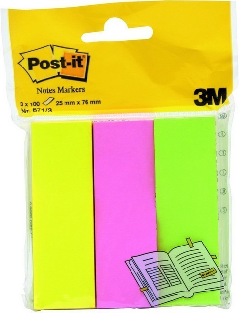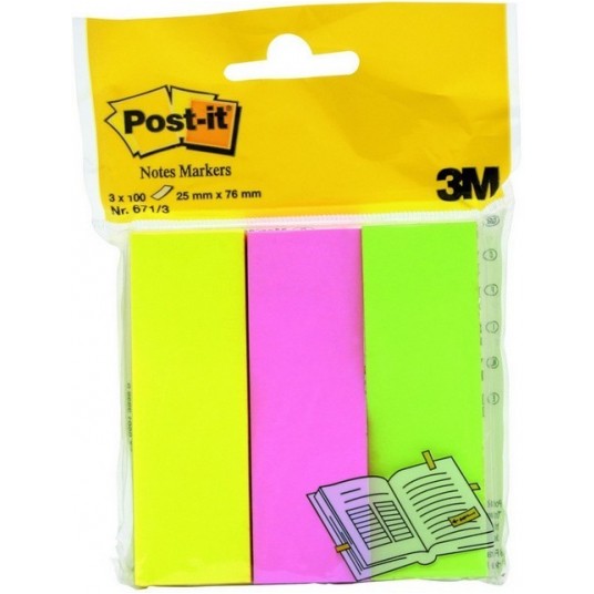 Znaczniki samoprzylepne Post-it® łączą w sobie mały poręczny rozmiar zakładek indeksujących i wygodę pisania karteczek samoprzylepnych. - Idealne do zaznaczania stron oraz zostawiania notatek w książkach i dokumentach. - Świetne do kodowania kolorami kluczowych zagadnień. - Można po nich pisać, przyklejać i odklejać nie zostawiając śladów. - Znaczniki w rozmiarze 25 x 76mm umożliwiają zrobienie krótkiej notatki. - Produkt z certyfikatem PEFC - kupując dbasz o naszą planetę. - Skład: Papier 70g/m, z certyfikatem PEFC CH18/0914, bielony bez użycia chloru gazowego; klej repozycjonowalny 3M w technologii mikrosferycznej. - Po użyciu produkt nadaje się do recyklingu. - W opakowaniu 3 bloczki po 100 znaczników w rozmiarze 25 x 76 mm, w 3 pastelowych kolorach: żółty, różowy, zielony.