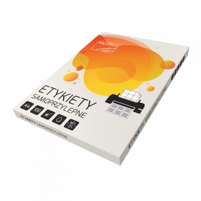 - białe, samoprzylepne dostarczane na arkuszach o formacie A4 - współpracują ze wszystkimi rodzajami drukarek igłowych, atramentowych i z większością drukarek laserowych (patrz zalecenia producenta drukarki) - Quatro Clean Technology - z krawędziami bezpieczeństwa, które zapobiegają odkładaniu się kleju na mechanizmie drukarki