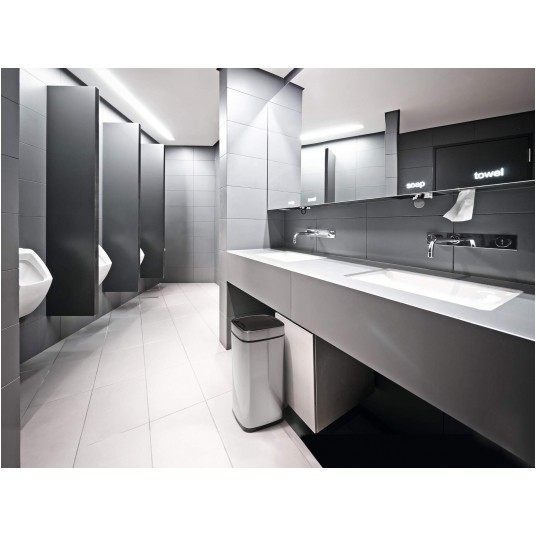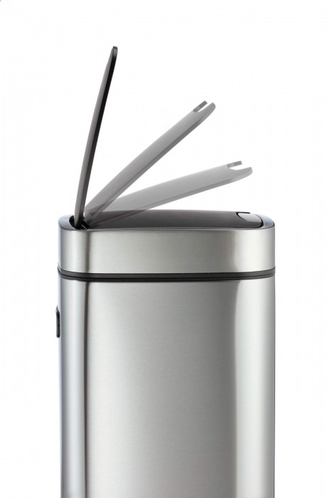 Wysokiej jakości kosz na śmieci z technologią czujników. Wygodna i higieniczna obsługa. - czujnik umożliwiający bezkontaktowe otwieranie i zamykanie - ciche zamykanie pokrywy dzięki delikatnemu domykaniu - stal nierdzewna z powłoką zapobiegającą powstaniu odcisków palców - indywidualne otwieranie i zamykanie pokrywy za pomocą przełącznika dotykowego - zintegrowany uchwyt do mocowania worka na śmieci