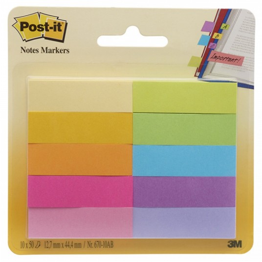 Zakładki indeksujące Post-it mix kolorów. - 10 bloczków po 50 karteczek (znaczników) w rozmiarze 12,7 x 44,4mm - idealne do zaznaczania stron oraz zostawiania notatek w książkach i dokumentach - świetne do kodowania kolorami kluczowych zagadnień - można po nich pisać, przyklejać i odklejać nie zostawiając śladów - produkt z certyfikatem PEFC - kupując dbasz o naszą planetę - klej akrylowy repozycjonowalny - gramatura: 70 gsm.